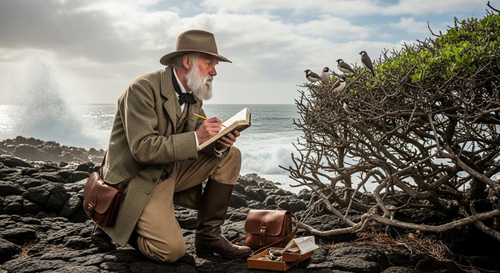 Charles Darwin developed the theory of evolution by natural selection, forever changing how we understand life. His observations of finches, tortoises, and wildlife on the Galápagos Islands helped him realize that organisms adapt to survive their environment.