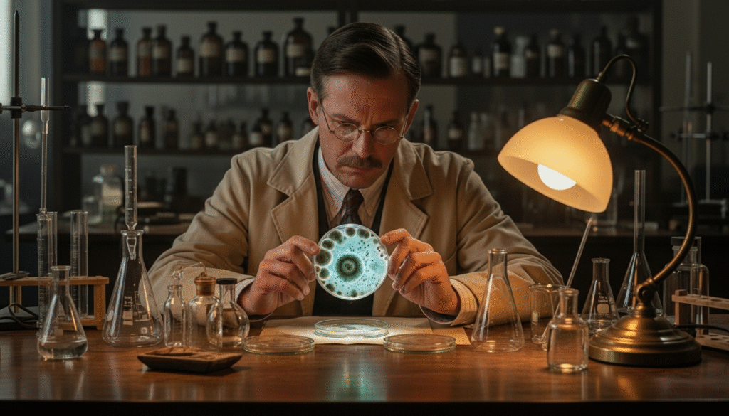 In 1928, Alexander Fleming discovered penicillin when he noticed mold killing bacteria in a petri dish. This accident changed medicine forever.